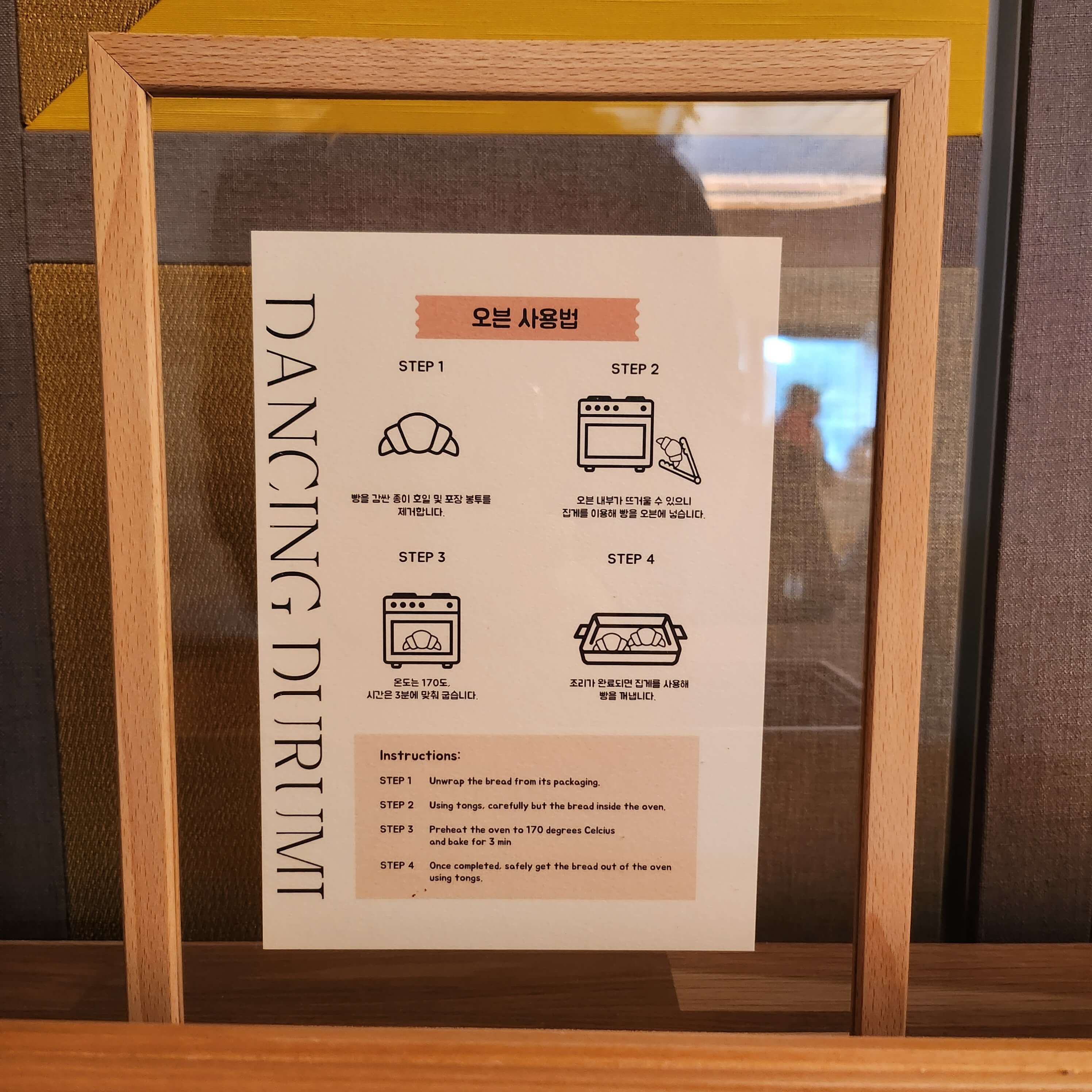 테이블 홀로 가는 길에 셀프 데스크가 있었는데 이곳에서 빨대나 티슈를 가져올 수 있고, 오븐이 있어서 빵을 데우거나, 칼로 빵을 자를 수 있는 공간이 있었습니다.